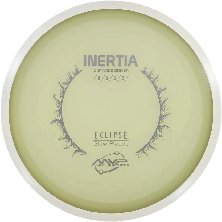 The MVP Inertia in Eclipse plastic is an understable distance driver built for glide, easy turn, and controlled distance, with bright glow performance for visibility in low-light rounds.
