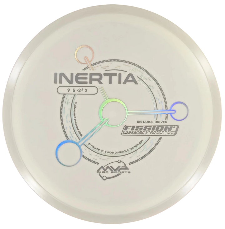 The MVP Inertia in Fission plastic is an understable distance driver built for glide, easy turn, and effortless distance, making it ideal for hyzer flips and controlled turnover shots.