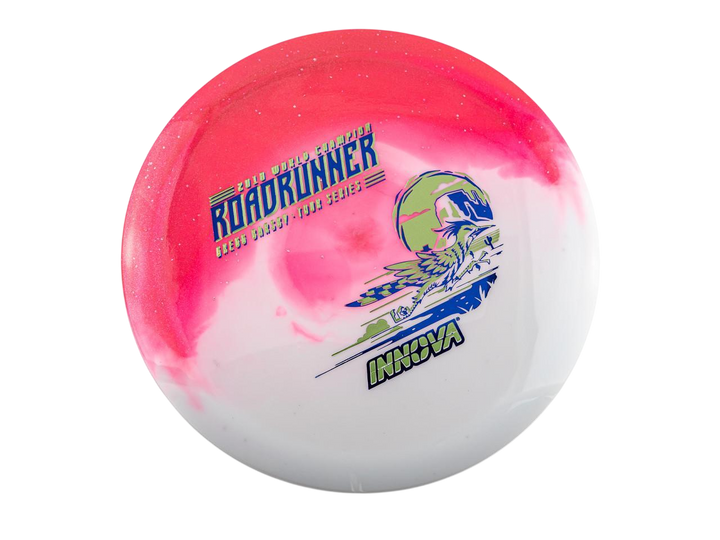 The 2026 Gregg Barsby Tour Series Duo Roadrunner brings superior glide and workable turn to the masses! The 2018 PDGA World Champion takes his long running Signature disc and blends it in Innova's breathtaking new DUO plastic. These discs look so cool in the air! A substantial portion of each sale will benefit Gregg Barsby and his touring efforts.